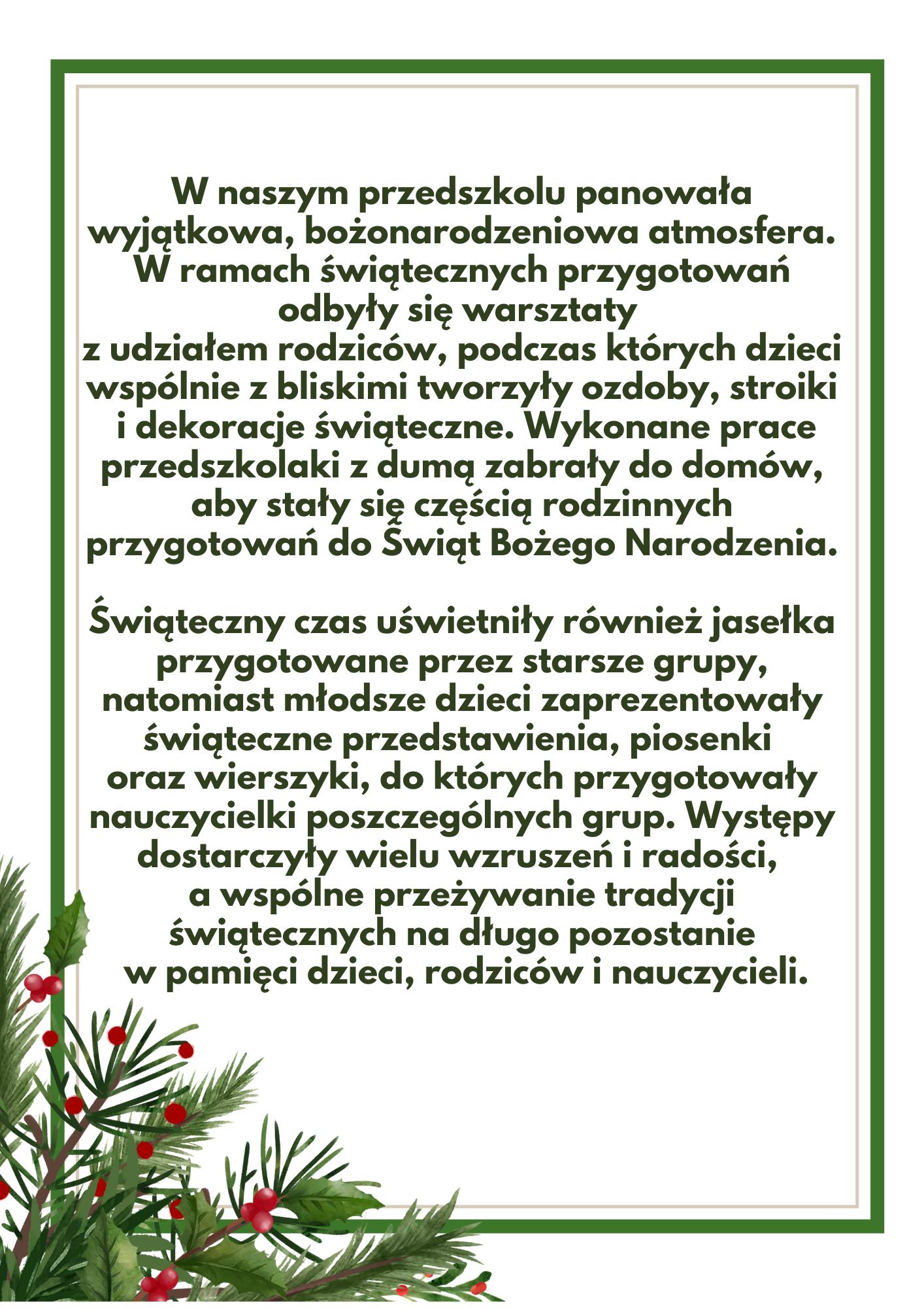 Oddział III - grupa "Zajączki" oraz oddział V - grupa "Jagódki" biorą udział w konkursie "Kolędy Przedszkolaków 2025", organizowanym przez Fundację Kreacja Magia Rąk. Przedszkolaki walczą o tytuł "Gwiazdy publiczności".
